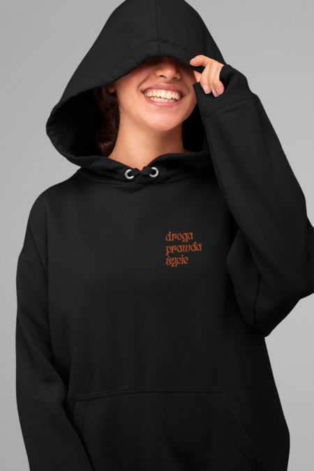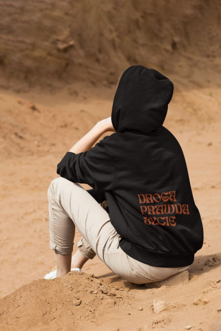 Bluza – Droga Prawda Życie . Koszulka z serii – Słowo . Koszulka w klasycznym kolorze białym, kremowym i czarnym .