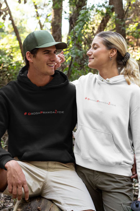 Bluza – Droga Prawda Życie . Bluza z serii – Słowo . Bluza w klasycznym kolorze białym, kremowym i czarnym .