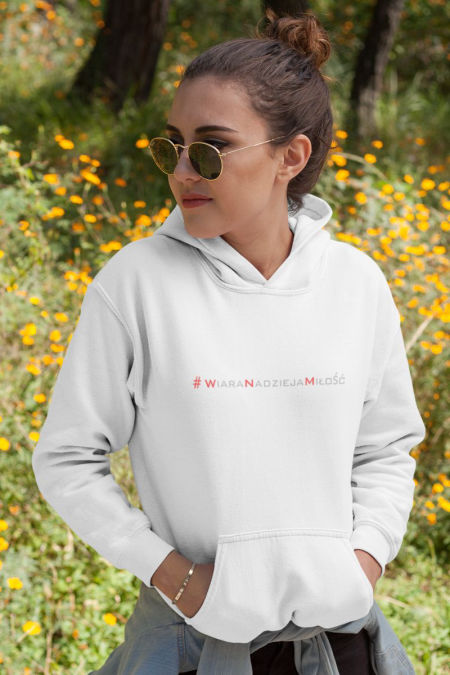 Bluza – Wiara Nadzieja Życie . Bluza z serii – Słowo . Bluza w klasycznym kolorze białym, kremowym i czarnym .
