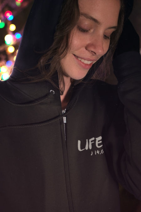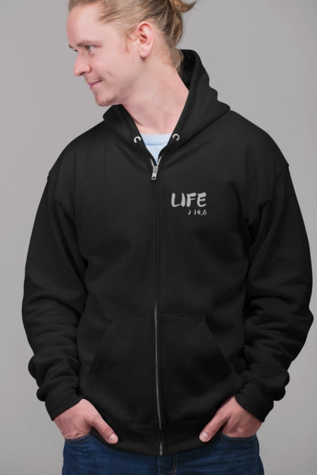 Bluza rozsuwana – Droga Prawda Życie . Koszulka z serii – Słowo . Koszulka w klasycznym kolorze białym, kremowym i czarnym .