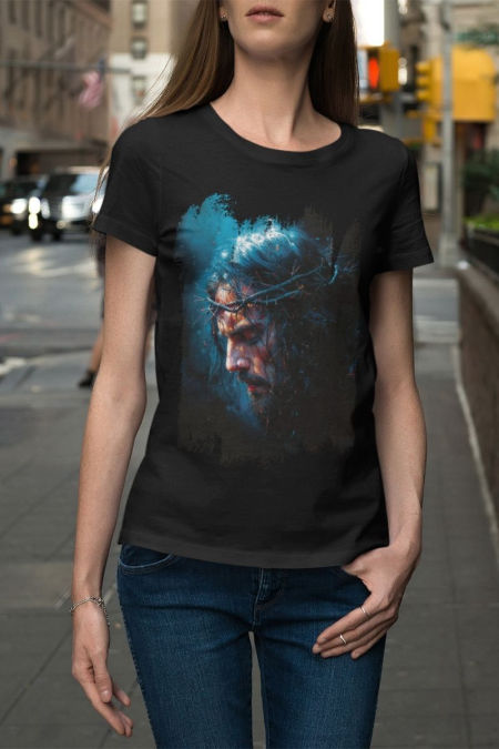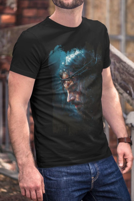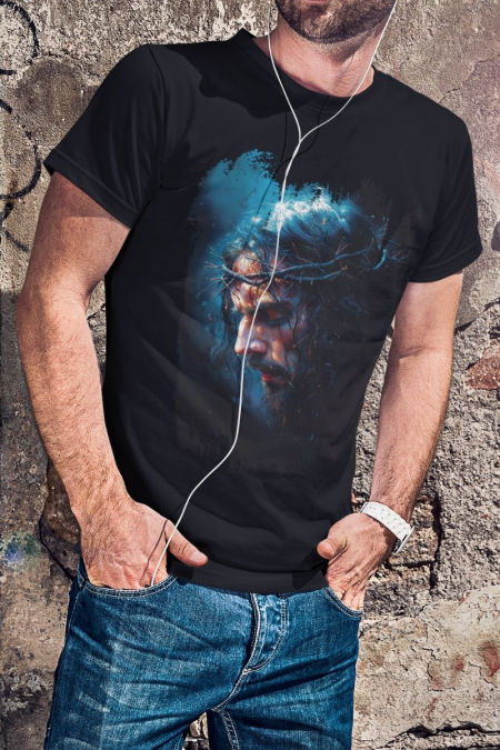 Koszulka z serii – Oblicze to kolekcja odzieży z wizerunkiem Oblicza Chrystusa w różnych odsłonach na białym, czerwonym i niebieskim tle .
