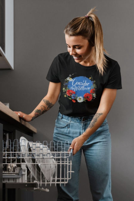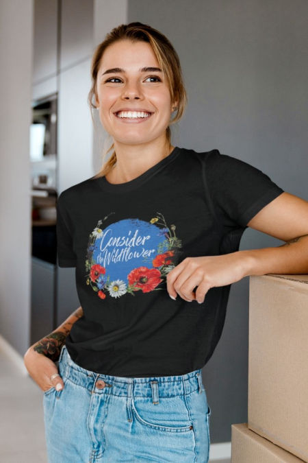 Koszulka – Bądź jak kwiaty . Koszulka z serii – Duma . Koszulka w klasycznym kolorze białym i czarnym i klasycznym kroju