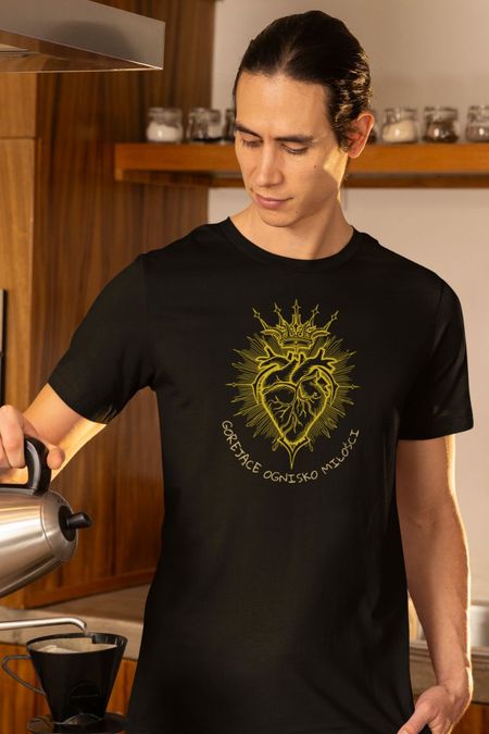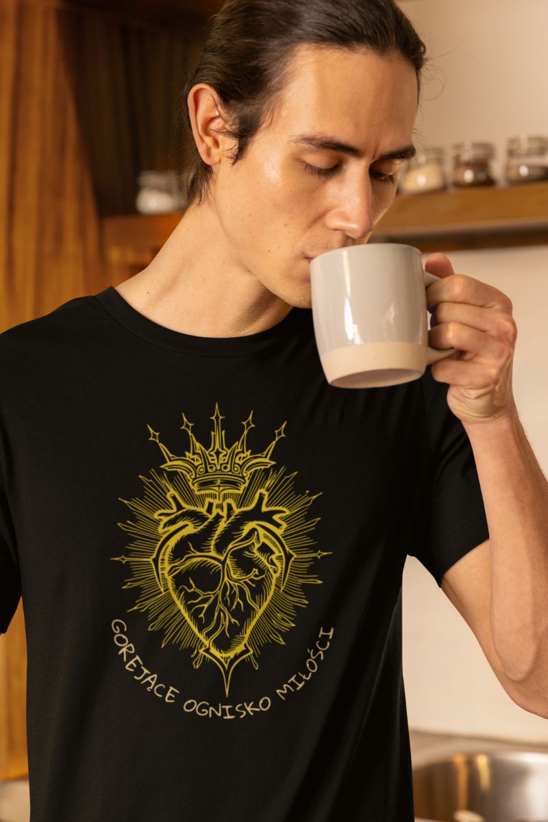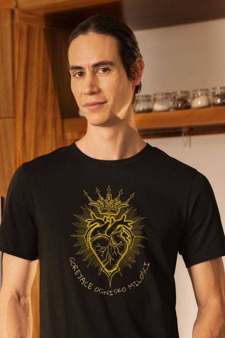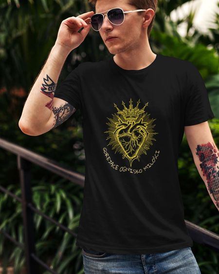 Koszulka –Serce - Gorejące Ognisko Miłości . Koszulka z serii – Oblicze . Koszulka w klasycznym kolorze czarnym .