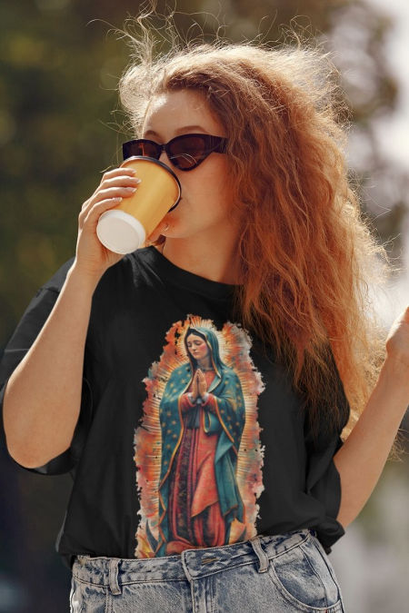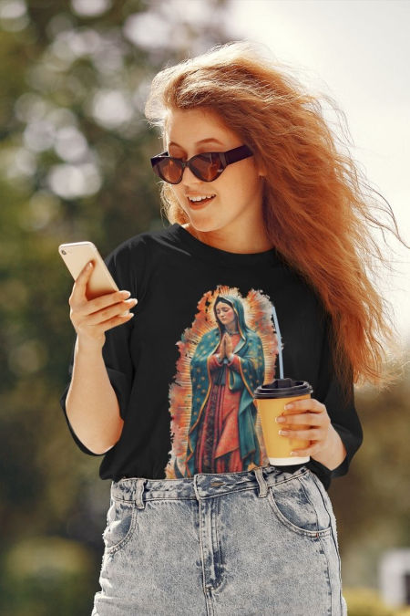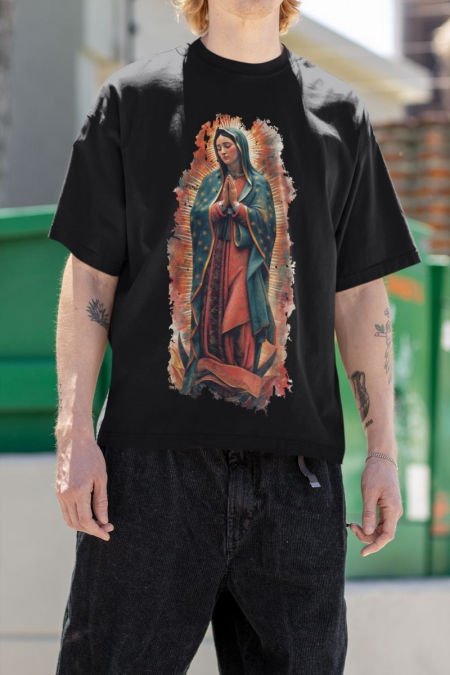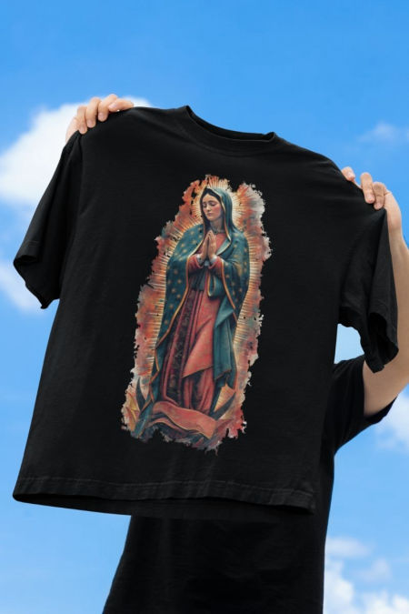 Koszulka – Matka Boża Guadalupe. Koszulka z serii – Wizerunek. Koszulka w klasycznym kolorze czarnym o powiększonych rozmiarach