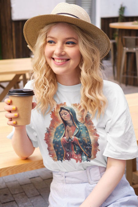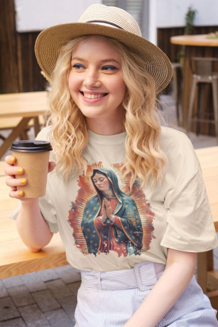 Koszulka z serii – Wizerunek to kolekcja odzieży z wizerunkiem Matki Bożej i świętych.