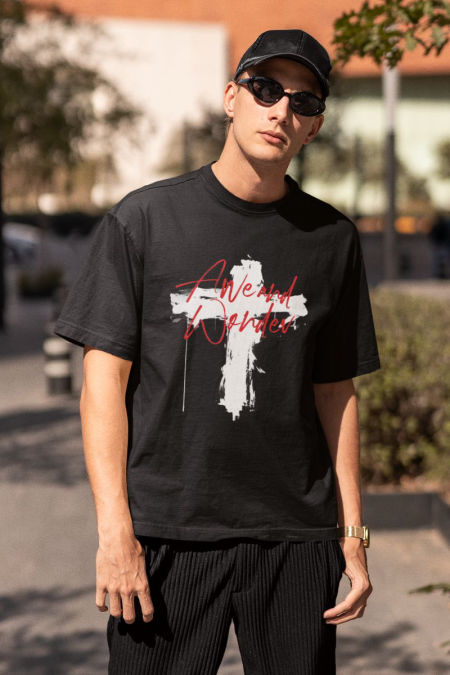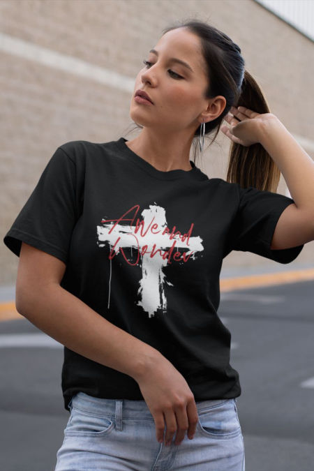 Koszulka z serii – Duma to kolekcja odzieży z przesłaniem . Symbole wiary i tekst otwierający pole do zastanowienia.