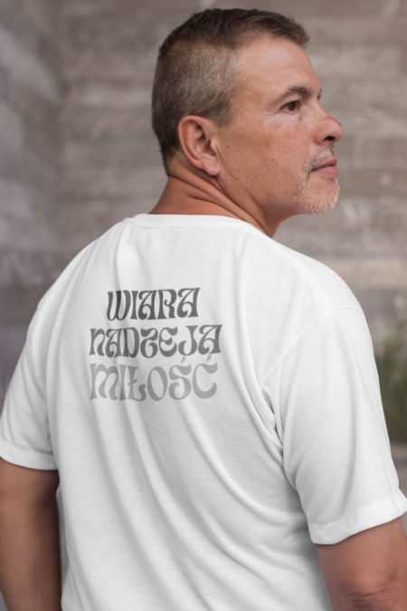 Koszulka z serii – Słowo to kolekcja odzieży z przesłaniem . Symbole wiary i tekst otwierający pole do refleksji.