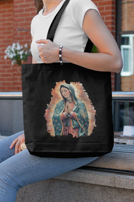Bawełniana torba z nadrukiem - okazja na świadectwo wiary przy okazji zakupów. Pomysł na prezent dla najbliższych. W tradycyjnych kolorach czarnym i ecru