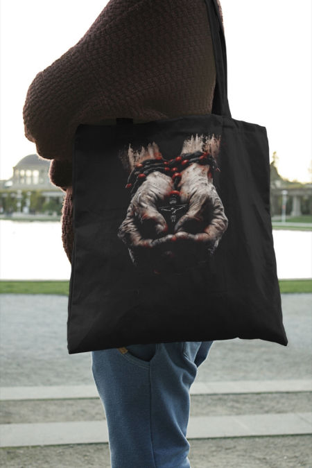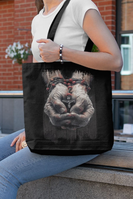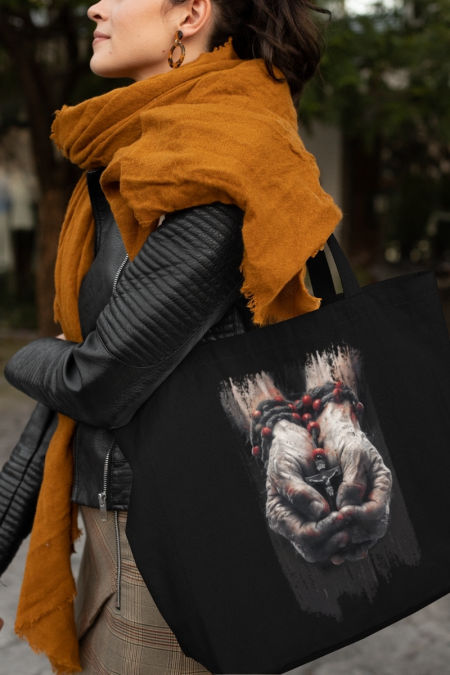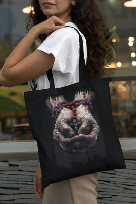Bawełniana torba z nadrukiem - okazja na świadectwo wiary przy okazji zakupów. Pomysł na prezent dla najbliższych. W tradycyjnych kolorach czarnym i ecru